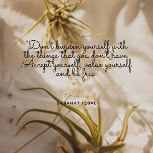 “Don’t burden yourself with the things that you don’t have. Accept yourself, value yourself and be free”