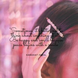 “Sometimes, it’s better not to think about anything at all. Be happy and smile because peace begins with a smile”