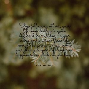 Stop follwoing others, your life and destiny is quite different from them. You never know where there life might be going. Appreciate everything in your life and seek happiness in whatever you have.